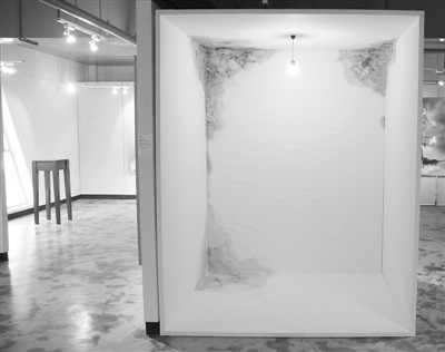 記者昨日在展廳見到,這件裝置藝術展品名為《不能知道的事兒》,占地約一平方米,作品是一間開放式的小屋,“屋”中央掛有一盞昏暗的白熾燈,“小屋天花板”的角落里有一片片的“水漬”,水漬上是一張張孩子的可愛笑臉。