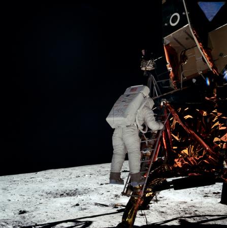 1969年7月16日“阿波羅”11號點火升空,歷時5天,于北京時間7月21日4時17分著陸艙在月球靜海地區著陸,尼爾?阿姆斯特朗和艾?奧爾德林兩位宇航員相繼踏上月球表面,開創了人類首次登上地球以外的另一個天體的新紀元,實現了人類歷史上的偉大創舉。阿姆斯特朗登上月球時的那句話——“這是我個人邁出的一小步,卻是人類的一大步”,成為傳頌至今的名言。“阿波羅”計劃一共實現了6次載人登月,12名美國宇航員登上了月球,開展了系統的月球科學考察、科學實驗,安裝了探測設施,采集月球土壤和巖石樣品381.7千克。