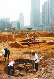 記者在考古發(fā)掘開(kāi)始后不久進(jìn)入現(xiàn)場(chǎng),看到了已經(jīng)清理出來(lái)的20多座古墓。據(jù)正在現(xiàn)場(chǎng)的市考古研究所技術(shù)人員郭俊峰介紹,這個(gè)區(qū)域已經(jīng)探知的古墓約40座,已 發(fā)掘的有20多座,上到漢唐,下到宋元,時(shí)間跨度很大,這說(shuō)明此區(qū)域是具有相當(dāng)長(zhǎng)歷史傳承的墓地。另外發(fā)現(xiàn)的10座古窯遺址,也正在清理和研究中。