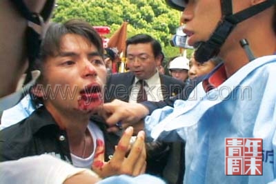 靖國神社內,眾人向神社行禮參拜,突然,一個學生模樣的年輕人沖到前面高呼“反對參拜靖國神社!”他很快被撲倒在地,雙方扭打在一起。終于有人竭力拉開了他們,又有一位老者上前,緊逼著他走了很遠,并不住呵斥:“滾回中國去!滾回中國去!”年輕人一言不發,但這長達幾分鐘的反復呵斥令這些中國觀眾有些難以忍受。一直用攝像機記錄這一過程的李纓當時也急切地想驗明這個年輕人的身份,于是,在旁邊所有人都把這個反對參拜靖國神社的年輕人當作中國人的時候,李纓小心翼翼地問了一句:“是中國人嗎?”“不,我是日本人。”