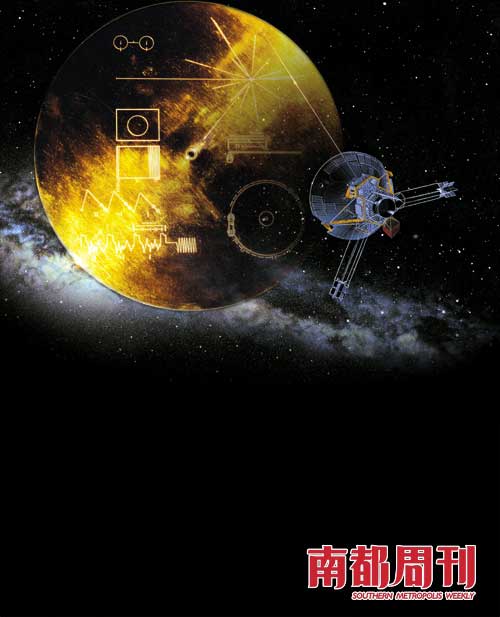 兩艘“先驅者號”飛船上都安裝有一個金屬板,它可謂是地球人送給外星人的“名片”。金屬板的左側刻有太陽系的圖案;右側刻有一個男人和一個女人的圖像,男人在招手致意;下方刻有太陽及太陽系九大行星的編碼。在兩艘“旅行者號”飛船上都裝有送給外星人的“郵包”:一個圓形鋁盒,里面放著一張鍍金視聽光盤。讀取光盤數據的說明寫在鋁盒的蓋子上。光盤上收錄了 115張圖片,介紹了地球文明最重要的一些資料 (如中國萬里長城、脫氧核糖核酸的分子式等);錄有地球人用 55種語言向外星人發出的簡短問候;存有 35種聲音信息;還有地球人的音樂文化(如巴赫的作品、爵士樂、中國名曲《高山流水》等)。