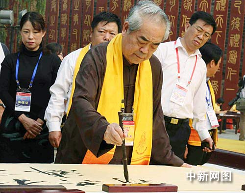 中新網曲阜9月28日電 (記者 張璐 王超)作為今年孔子文化節的突出亮點之一,今天上午舉行的己丑年山東曲阜公祭孔子大典祭文由著名書畫名家、國學大師范曾親自撰寫,并于此間孔子文化園刻碑留念。