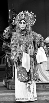 “鎧甲” 行話為“靠”,造型很像甲胄。武將扎上“靠”,表現出人物威風凜凜、氣宇軒昂的英雄氣概。“褶”在京劇服裝里,屬于便服,不論哪個行當或哪種身份的人物都可以穿這種服裝。旦行的褶子為對襟,略短。褶子如繡有飛鳥、蝴蝶、花卉等圖案的稱為花褶子;沒有刺繡的稱為素褶子。“帔”,繡有團龍團鳳圖案的黃帔,為皇帝、后妃、公主所穿;繡有鶴、鹿、牡丹、花卉等圖案的帔,為宰相、重臣、紳士、夫人等人物所穿;狀元登科和新婚拜禮時穿大紅繡花帔;一般文人學士只穿素帔。下層人物也各有專門服式。除兵卒的衣外,劊子手、龍套均有特定的衣。漁家、堂倌、書童穿對襟粗布衣褲。還有僧人、道人穿的八卦衣、道姑衣、法衣等。包括各路神仙也有屬于各自的服飾。(職茵 整理)