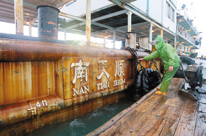 記者尾隨近距離看到,因?yàn)楹I喜龥坝浚⊥г诳拷澳咸祉槨睍r(shí)極其小心,隨后隊(duì)員們相互幫助,一一登上“南天順”。約一個(gè)小時(shí)后,同行的邊防派出所民警離開“南天順”返回碼頭。記者上前了解到,水下考古隊(duì)員當(dāng)晚便開始船上生活。在接下來的三個(gè)月,他們將一直待在船上,按照計(jì)劃進(jìn)行打撈工作,生活必需品則由民警負(fù)責(zé)運(yùn)送。