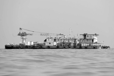 海面上海風颼颼,盡管身形龐大的“南天順”穩如泰山,但摩托艇卻在海面上搖搖晃晃。借著高倍相機鏡頭,記者注視著“南天順”打撈船上的舉動。上午10時左右,2名身穿潛水服的隊員潛入水下,大約半個小時后,一批下水隊員出水。隨后,另有一批隊員再次下水作業。