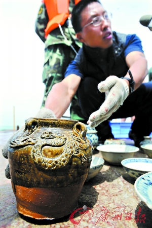 據(jù)介紹,自5月1日“南澳Ⅰ號”考古發(fā)掘現(xiàn)場首次向媒體公布新出水文物后,隨后近一周時間已陸續(xù)有文物出水。目前,對古船表面文物的發(fā)掘基本告一段落,船體表面清淤工作進入尾聲。下一步,水下考古隊員將從目前已現(xiàn)真身的“南澳Ⅰ號”右側船舷往里發(fā)掘,“南澳Ⅰ號”水下考古集中進入船艙內部發(fā)掘階段。