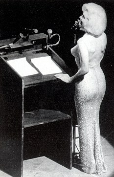 1962年5月19日,為慶?夏岬峡偨y(tǒng)即將到來(lái)的生日,瑪麗蓮·夢(mèng)露身穿綴滿亮片的露背晚禮服,在紐約麥迪遜花園廣場(chǎng)獻(xiàn)唱了一首甜蜜的《總統(tǒng)先生,生日快樂(lè)》。演唱結(jié)束后,白宮攝影師塞西爾·斯托頓抓拍到一張瑪麗蓮·夢(mèng)露與肯尼迪兄弟的合影。