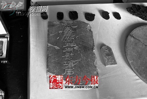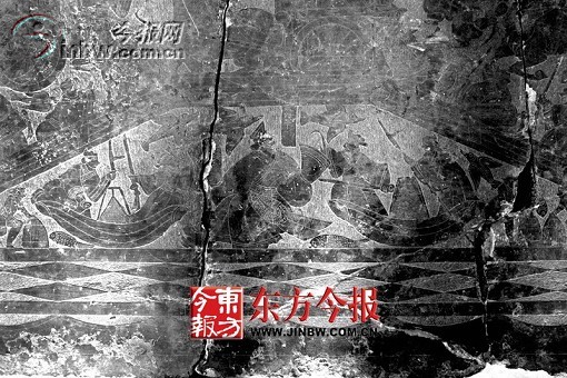 在已發現的曹操墓畫像石中,比較完整的都是從盜墓賊手中繳獲的。這些畫像石畫工精細嫻熟,有“神獸”、“七女復仇”等圖案,并刻有“主簿車”、“咸陽令”、“紀梁”、“侍郎”、“宋王車”、“文王十子”、“咬人”、“飲酒人”,等等,另外還有門簪、雕龍等殘塊。