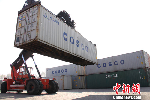 中新網(wǎng)北京5月9日電 (網(wǎng)絡(luò)媒體走轉(zhuǎn)改(北京平谷)報(bào)道組 宋方燦)地處京津冀交匯地帶的北京平谷,具有獨(dú)特的區(qū)位優(yōu)勢(shì),在十二五期間將打造“京津商谷”。平谷馬坊物流基地作為直通天津的陸路口岸,負(fù)擔(dān)著北京一定數(shù)量的大宗進(jìn)出口貨物的集中轉(zhuǎn)運(yùn),成為北京的“出海口”。