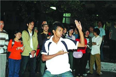 瑞士留學(xué)生“飄零”的一套“詠春拳”博得滿場喝彩,他用不太流利的漢語自我介紹:“我來中國已經(jīng)八個月,我從小就很喜歡中國武術(shù),這套詠春拳是我到廣東佛山時向當(dāng)?shù)厝藢W(xué)習(xí)的”;來自斯里蘭卡的米奇也不甘示弱,拿著中國的雙節(jié)棍“哼哼哈哈”的舞了起來。十余名留學(xué)生還跟著幾名中國學(xué)生練起了太極拳,一邊練拳一邊學(xué)說漢語……“漢語角”負(fù)責(zé)人白彥介紹:“許多外國朋友雖然學(xué)了中文,但在生活中依然存在著許多不便,在外面就餐、游玩時經(jīng)常會遇到語言障礙。于是我們便仿照‘英語角’的形式舉辦‘漢語角’,既讓外國人練口語,也能讓他們了解中國傳統(tǒng)文化。”(記者談海亮 通訊員張聞 林賢宰)