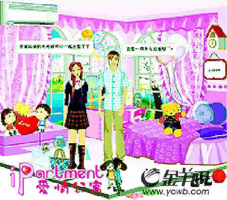廣州某高校的大一女生小T坐在電腦前,打開“某某公寓”網(wǎng)站,輸入密碼。一間網(wǎng)絡(luò)虛擬房間很快出現(xiàn)在屏幕上。寒假里,她在網(wǎng)上與一位男網(wǎng)友“同居”了。幾天前,兩人在網(wǎng)上領(lǐng)了“結(jié)婚證”,并在BBS上接受了網(wǎng)友們的祝福。現(xiàn)在“小兩口”正在忙“裝修”。“看看結(jié)婚以后,感覺保持得怎么樣。嘻嘻。”小T輕松地說。