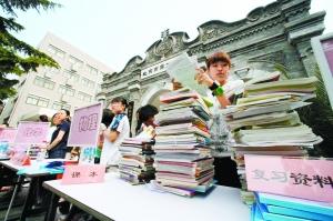 “眼看就要高考了,聽說他們連課本都沒有。”“我的高考結束了,我想我的資料能對他們在高考中考出好成績提供幫助。”昨日上午9時,剛剛結束高考的北京高三學生們在二中校門外將自己的復習資料捐贈給災區,他們還將自己的祝福寫在復習資料的扉頁上,向經受地震災害的同齡人送去鼓勵。