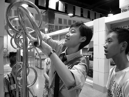 14日下午,濟南某中學高一學生孫元(化名)與同學在省科技館當義務講解員。孫元說,學校布置了暑期社會實踐作業,要求到社區、單位進行社會實踐,并寫出報告。為使學生更好地完成社會實踐,放假之前,學校主動與社會各單位聯系,幫學生找了不少社會實踐崗位,比如到科技館、博物館當講解員,到列車上當服務員等,然而,在崗位分配上卻有了麻煩。孫元說,全班59名同學,而分配到每班的崗位只有38個,比如列車員崗位只有3個,全班有17名同學報名。無奈之下,班長最后決定用“抓鬮”的辦法,抓到的同學雀躍不已,沒抓到的只好“自謀出路”。孫元抓到了省科技館講解員的崗位。