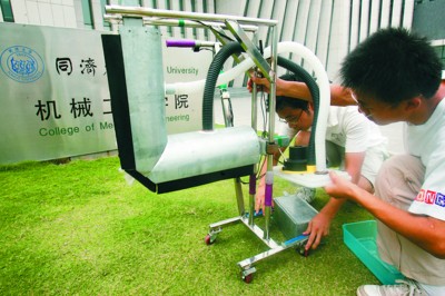 “保潔機”將代表上海參加10月份在武漢舉行的第三屆全國大學生機械創新設計大賽全國總決賽。這些天,幾名設計者正在對奧運場館的保潔工作進一步調研,完成后將提出改進方案,進一步提高保潔機的去污能力。(實習生 楊通梅 記者 張智麗)