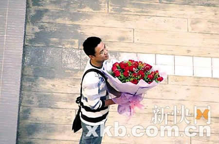 女生乙:“他手拿一束紅玫瑰花,還有禮品,是不是來求愛的?”