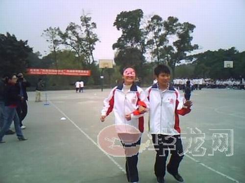 “什么都看不見,完全沒有方向感,心里感到很害怕。”在25米盲人短跑接力賽上,高(一 )17班的周玲同學剛下場就緊張地對記者說道。因為帶著眼罩,整個世界都是黑暗的,只能在摸索中前進,最后,在伙伴的帶領下周玲才走到了終點。
