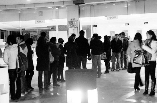 演出前幾天,浙大城市學院的百度貼吧已經到處是求票的帖子,演出當天同樣是從晚上5點半左右,隊伍已經從二樓劇場門口排到了一樓。大門口甚至還出現了“ 黃牛票”,兩元一張的票價被炒到五元甚至更高。而門口檢票的同學透露說,他們還收到了十幾張假票,是學生自己去彩印店打印的“偽版”門票。
