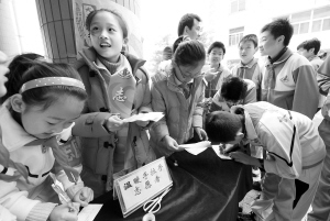 昨天,在中關村一小校園內有六七個小分隊擺攤招募志愿者,除了系鞋帶外,潔廁、護綠、安全、節(jié)水節(jié)電、社區(qū)服務等都是志愿者分隊的服務內容。“希望學生把‘志愿’意識融入生活,形成新的生活方式!痹搶W校有關負責人介紹說,新學期學校將實行志愿者注冊,為學生配發(fā)志愿者證。學生志愿服務的內容和時間、參加培訓的經(jīng)歷、獲得的榮譽稱號、志愿活動的證明人等都會詳細記錄在上面。學生參與志愿服務的時間每學期不得低于50個小時,中高年級學生還將參加校外的社區(qū)服務活動。晨報記者 李木易/攝