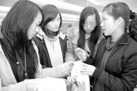 去年10月成人高考正式通過后,學(xué)校讓她到學(xué)院本部與紡織品檢驗(yàn)與貿(mào)易專業(yè)的同學(xué)一起,隨班上課。學(xué)院還聘請(qǐng)她為學(xué)院輔導(dǎo)員、兼職教師,為同學(xué)們上實(shí)踐課,并享有課時(shí)補(bǔ)貼。