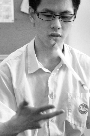 練習了半年,杰仔的技能已經熟練,其中最拿手的“絕招”就是“飛筆”:兩只手一齊出動,兩支筆驀地騰起,劃了個360度的漂亮弧圈,掉下來時剛好被兩指夾住。杰仔常在教室里表演,引得同學們紛紛模仿,2007年下半年,他成立了筆舞社,吸引了20多名社員同樂。