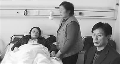 省人民醫(yī)院楚康樓康復(fù)科病房?jī)?nèi),雷良霞左腿上裹著塑料支架,躺在病床上起身吃飯仍需父母攙扶。