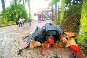 “殯葬管理監察大隊”和“葬改舉報中心”的牌子竟掛在鬧市區一塊爭議地的民宅大院門前,大院內空地上還堆放了13副令人聞之色變的棺材!附近居民、學生上學和放學或返家每每經過此地時,無不大驚失色……這是發生在廣東吳川市的一件咄咄怪事。昨日,記者在采訪中了解到,吳川市民政局的上述所為已引發了當地民眾、師生的強烈不滿。