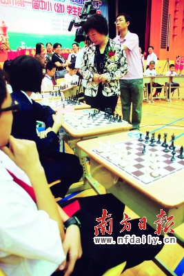 前日,“中國移動杯”中山市首屆中小(幼)學生智力運動會在中山市一中正式拉開帷幕,我國國際象棋大師謝軍、圍棋大師馬曉春和中國象棋大師呂欽來到現場并與中山小棋手進行了車輪表演賽。