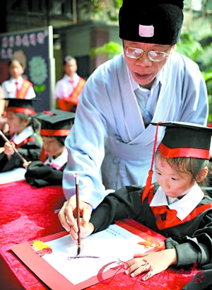 每到新學期,廣州一些小學都會為新生舉行“開筆禮”。 喬軍偉 攝