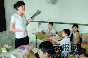 “在這個很簡陋但整齊的教室里坐著50多個小學生,生于1986年的姚老師已經在這里任教兩年。她帶兩個班,同時是一個班的班主任。每月工資雖然只有800元左右,每天工作十幾個小時,但她沒覺得苦。”