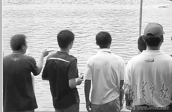 緊接著,這個老師又把下場比賽的另一名紹興隊選手護送至比賽碼頭。這名女生戴眼鏡、身穿藍白相間條紋的休閑上衣,手持遙控裝置。王老師則雙手把航模托給那名工作人員,請他再做一回“護花使者”。此人又心照不宣地站在了比賽碼頭。