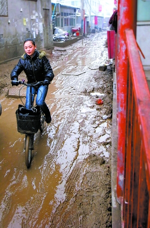 →“一看你褲腿和鞋上的爛泥就知道你是從唐家嶺出來的,”一位小伙子笑著說。村里的羊腸小路一遇到雨雪天就變得泥濘不堪,只有騎車出來才不會被弄臟。