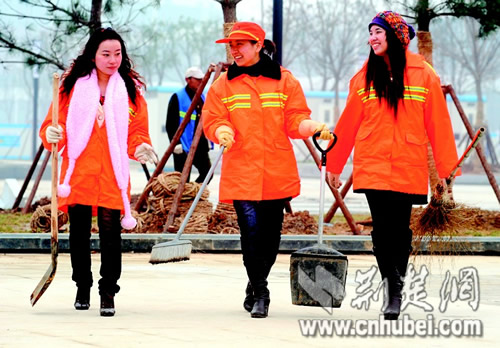 昨天中午,記者在武漢火車站東廣場看到,有三名年輕、漂亮的女孩,穿著橘紅色的環(huán)衛(wèi)工作服,和同事們一起作業(yè)。據(jù)介紹,這三名女孩都是“85后”的大學(xué)畢業(yè)生,于2009年12月25日前后應(yīng)聘上崗的,她們的名字分別是付莎莎(江漢大學(xué)衛(wèi)生技術(shù)學(xué)院畢業(yè))、羅瑛(長江職業(yè)學(xué)院畢業(yè))、付琴菲(湖北藝術(shù)職業(yè)學(xué)院畢業(yè))。