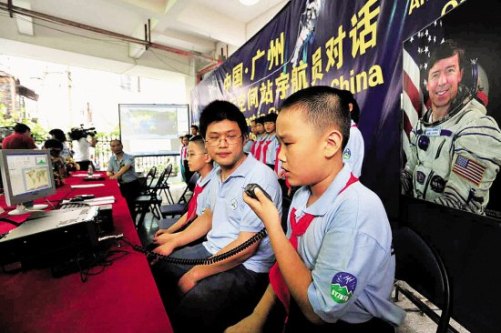 本報訊 記者蔡惠中攝影報道:昨日北京時間16時26分02秒,一個電波由廣州市同福中路第一小學的業余電臺發出,與正飛越廣州上空的國際空間站的電臺聯通上了!這也是我國小學生第一次舉辦的國際空間站業余無線電通訊計劃的活動。全程歷時8分30秒,學生們提出了20個問題。