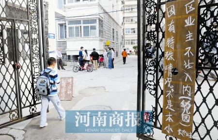 9月15日上午7時許,鄭州市伊河路與桐柏路交叉口附近的長宏花園小區門口多了個牌子:因有特殊原因,不是本小區業主不讓入內(幼兒園)。落款為長宏業主。同時,小區業主也當起“門神”,守著小區大門,不讓學生進入小區內長宏幼兒園上課。
