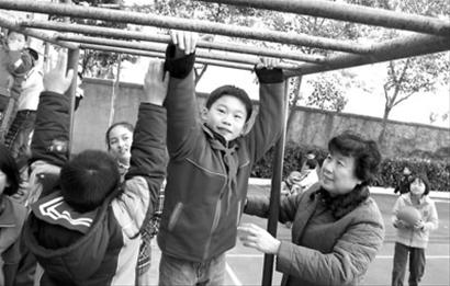 四年級的汪強投籃不小心摔倒在地,陶阿姨立即跑上前幫忙;四年級的幾位男生喜歡吊單桿,陶阿姨站在一邊做保護……今天早晨7:40,記者在浦東南路小學看到,護導老師和保安在校門口迎接每一位到校的學生;提前到校的學生,在附近居民志愿者的指導下,在操場上參加各種體育運動。