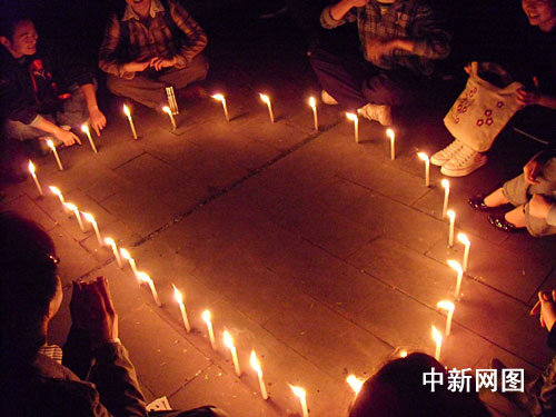 8時30分,隨著10秒倒計時的結(jié)束,西南大學(xué)各寢室的燈光依次熄滅,14個寢室亮起的燈光拼成了字母“D”字樣,校園內(nèi)頓時一片歡呼。在英語角,同學(xué)們還用蠟燭擺出了字母“D”,大家圍坐在蠟燭邊上,共同祈禱“地球平安,生態(tài)和諧”。