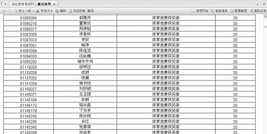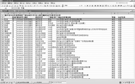 真的和去年一樣嗎?記者今天上午在浙江教育考試網查閱了該省2008年普通高校招生政策加分考生名單公示公告,緊挨其下還有一份“浙江省2008年獲得國家二級運動員(含)以上稱號測試認定合格名單公示”。