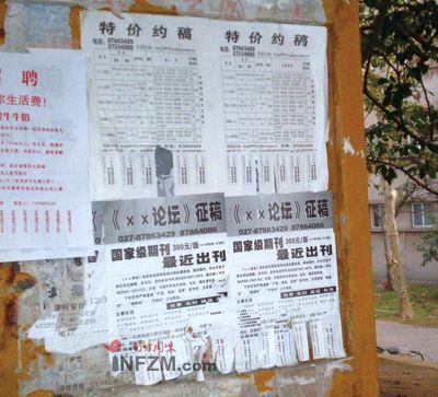 到2007年9月,在讀研究生已超過(guò)165萬(wàn)人,大量教師、學(xué)生發(fā)表論文的需求,直接推動(dòng)了學(xué)術(shù)刊物如火如荼地收取版面費(fèi)。一名代理商提供了發(fā)表論文的“價(jià)目表”,省級(jí)刊物600-900元;國(guó)家級(jí)刊物900-1500元;核心刊物4500-18000元。“這已經(jīng)算低了,是有關(guān)系才能拿到的。”