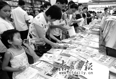 在廣州購(gòu)書(shū)中心二樓,家在白云區(qū)的曾先生手里拿著一張清單,上面是準(zhǔn)備升讀五年級(jí)的女兒手抄的各科必備輔導(dǎo)書(shū),“老師指定的,全班必須要買同一種。”曾先生說(shuō)。但是,他在購(gòu)書(shū)中心轉(zhuǎn)了大半天,還是沒(méi)有找到指定的那本語(yǔ)文輔導(dǎo)書(shū),顯得很無(wú)奈。據(jù)了解,每年開(kāi)學(xué),曾先生都肩負(fù)著為女兒找書(shū)的重任,為求一本“指定教輔”,奔走于各大書(shū)店。曾先生告訴記者,曾經(jīng)為了購(gòu)買女兒的一本練習(xí)冊(cè),全家人都出動(dòng)了,從白云區(qū)一直跑到位于黃埔區(qū)的購(gòu)書(shū)中心分店才找到。