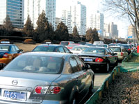 昨天是位于西城區的中央音樂學院的考級日,考場門前出現了眾人趕考的火爆場面。其中不少孩子都是乘坐家長開的“專車”來考試,浩浩蕩蕩的趕考車隊很快將中央音樂學院內部的停車位占滿,而后又排到了學院西門外的二環輔路上,停放了百米多長。雖有交警疏導,此路段仍然較為擁堵,車輛行進十分緩慢。