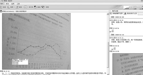 9時剛過,小王的網友“阿明”通過QQ傳來一張政治試卷的圖片,圖片顯示的是選擇題第17題到第19題的內容。一刻鐘后,又一張圖片傳過來,這次顯示的是一個圖形題。大約又過了一刻鐘,“阿明”傳來一份政治簡答題答案。上午10時43分,主觀題答案發送完畢。緊接著,單選題和多選題的答案也陸續發送過來,離考試結束前10分鐘時,“阿明”發來“完畢”二字。