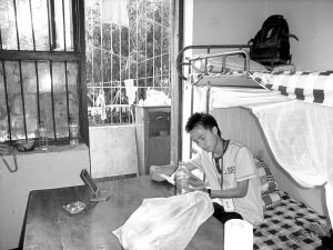 “我們?cè)谶@里生活無(wú)憂,而且每天都還有志愿者和社會(huì)各界人士來(lái)探望。”尹忠偉被轉(zhuǎn)移到成都中醫(yī)藥大學(xué)下汪家拐校區(qū),和小尹同安置在該校區(qū)的還有他學(xué)校的70多名高三同學(xué)。他住在一幢6層的宿舍樓,宿舍內(nèi)窗明幾凈,地面整潔,床鋪全是新的,枕頭也是新的,甚至?xí)疽彩切碌摹!叭钦渲玫模瑫?shū)本則是志愿者送的”。小尹坐在床邊的桌子旁,復(fù)習(xí)著功課。小尹說(shuō),在這里他不僅感受到了溫暖,更可以安靜迎考,他一定要考好,否則對(duì)不起幫助他們的人。