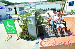 在北川中學,一條用簡易木板搭建起來的殘疾人過道已經(jīng)開始使用。曹景榮 攝
