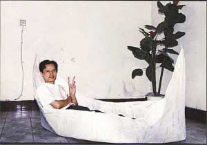 朱亞林還表示,首航成功后,他還將制作更多的紙船,組織由60艘紙船組成的船隊,參加明年元旦期間舉行的廈金冬泳活動,讓更多人關注廈金乃至兩岸之間的和平交流活動。這些活動完成后,還將就“紙船載人”、“紙船橫渡海域”等申報吉尼斯世界紀錄。上圖為朱亞林和他造的一種紙船。 (據海峽導報)