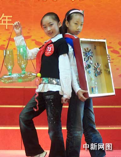 浙江少先隊(duì)員展示環(huán)保節(jié)能金點(diǎn)子。 作者:趙曄嬌