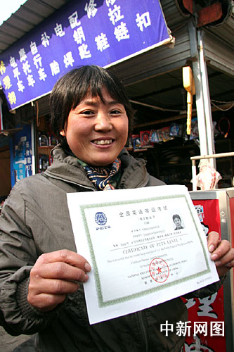 中新網(wǎng)寧波12月15日電(何蔣勇 陳未鳴 李孟龍)一位41歲的普通修鞋婦女,為了義無(wú)反顧地追尋自己心中的“夢(mèng)想”,竟然憑借過人的毅力堅(jiān)持孜孜不倦地自學(xué)英語(yǔ)20多年。“我終于通過全國(guó)英語(yǔ)等級(jí)考試,拿到了全國(guó)英語(yǔ)三級(jí)證書了。”昨天一見到記者,這位普通家庭婦女抑制不住內(nèi)心的激動(dòng)心情。