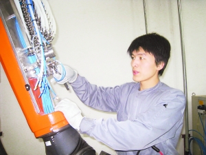 車間的流水線突然發(fā)出報(bào)警,機(jī)器人隨之停止工作。4月10日上午10時(shí),楊雪峰正坐在中控室監(jiān)視流水線運(yùn)轉(zhuǎn),面前的紅燈閃個(gè)不停。他拎起工具包,和師傅跑到報(bào)警機(jī)器前。一個(gè)兩米多高的機(jī)器人“罷工”了。“這個(gè)機(jī)器人是專給車身噴漆的,它一停,整個(gè)流水線就不能運(yùn)轉(zhuǎn)了。”楊雪峰控制住心里的緊張,緊握扳手的右手有些微微顫抖,爬上流水線和師傅一起查找原因,“進(jìn)廠后就沒修過機(jī)器人這個(gè)大家伙,在師傅身后學(xué)了半年,這回終于派上用場了。”