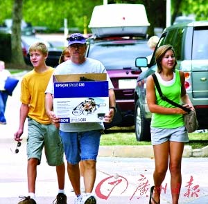 因此,每年美國(guó)大學(xué)新生報(bào)到時(shí),許多家長(zhǎng)都會(huì)“護(hù)送”孩子到學(xué)校。家長(zhǎng)只要有條件,一定要到孩子所上的大學(xué)去看一看。美國(guó)學(xué)生家長(zhǎng)一般都認(rèn)為,家長(zhǎng)有責(zé)任對(duì)孩子生活、學(xué)習(xí)環(huán)境加以了解。他們將教育看成對(duì)孩子一項(xiàng)最大的投資,因此從擇校到錄取到報(bào)到,他們覺得有必要全程跟蹤,全方位了解自己的子女未來生活四年的地方。