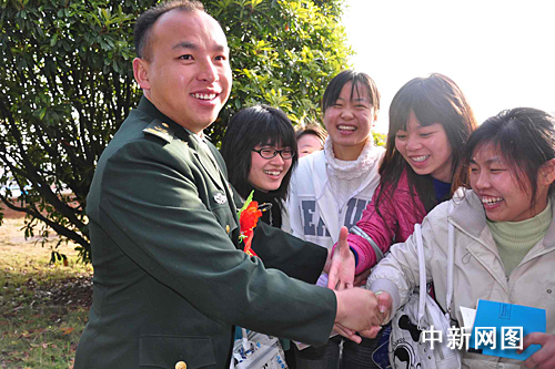 中新網南昌3月26日電(王劍 張曉朦) 3月26日,華東交通大學“日新論壇”上大學生們討論的焦點不是“周董”,也不是NBA的比賽,而是“槍王”何祥美。此前一天,“何祥美同志先進事跡報告會”在該校舉行,何祥美被現場女大學生高呼“英雄哥哥”并索要簽名。