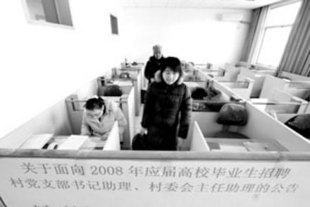 今天是北京市面向2008年應(yīng)屆高校畢業(yè)生招聘村黨支部書記助理、村委會(huì)主任助理的第一天。